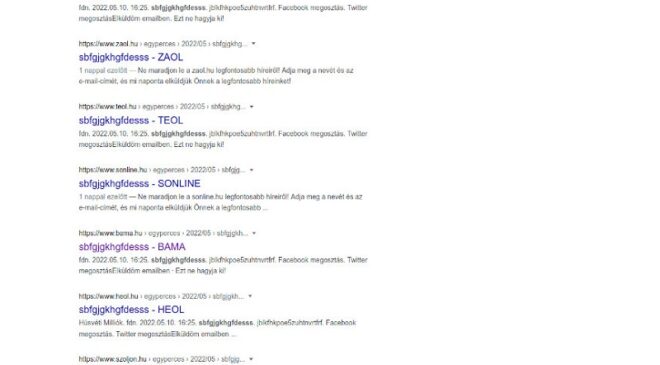 Pillanatok alatt az összes kormánypárti megyei lap átvette a sbfgjgkhgfdesss című hírt, amely ráadásul jó hosszan elérhető is volt. A mecsekalja.tumblr.com által megtalált, krikszkrakszokra épülő tartalom először a bama.hu-n jelent meg, majd a furcsa címmel ellátott „hírt” a Google szerint pillanatokon belül átvette az Sonline, a Duol, a Szoljon, a Veol, a Heol, a Vaol, a Délmagyar, a Boon.hu, vagyis a KESMA (Közép-Európai Sajtó és Média Alapítvány) / Mediaworks Hungary szinte összes megyei lapja – szúrta ki a Media1.hu. Mindez jól illusztrálja azt is, hogyan tarolja le a KESMA-lapokat esetenként egy-egy ellenzéki szereplőről szóló lejárató anyag is mindenféle ellenőrzés nélkül. Az értelmetlen című hír egyébként sokáig elérhető volt … Bővebben: Értelmetlen címmel közölt hírt a Szoljon.hu és a többi megyei KESMA-lap